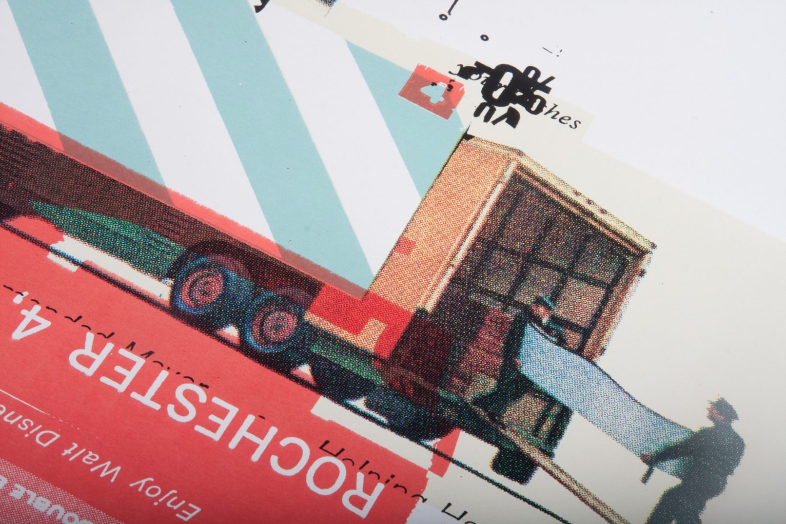 Sérigraphie 7 passages (1 jus, 1 bleu, 1 rose, 1 quadri) – format 50 x 70 – sur papier Olin Regular Blanc Naturel 300g